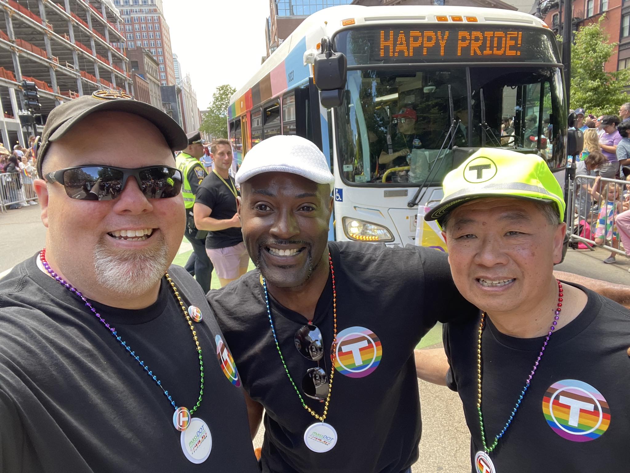 Today, as part of Boston’s Pride for the People parade, Local 589 Green Line Delegate Scott Page and Red Line Barn Captain Sylvester White joined MBTA General Manager Phil Eng and employees from the T, including members of Local 589 to march with the Pride in Transit Bus. Thank you to the MBTA’s Pride Employees…