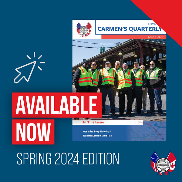 Brothers and Sisters, The summer 2024 edition of Carmen’s Quarterly is now available! Click here to read all the latest updates. This edition includes a recent E-Board visit to Nubian Station and the latest information about pushing forward legislation to stop assaults on transit operators.Most importantly, as we remind you on the back cover, our membership meetings…