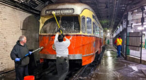 After vandals tagged historic streetcar 3295, a group of members from Local 589 and the MBTA joined together to remove the graffiti and clean the iconic streetcar at Boylston Station. Organized by Green Line Delegate Scott Page, this project harkened back to the 1970s when a group of dedicated 589 members restored this PCC to…
